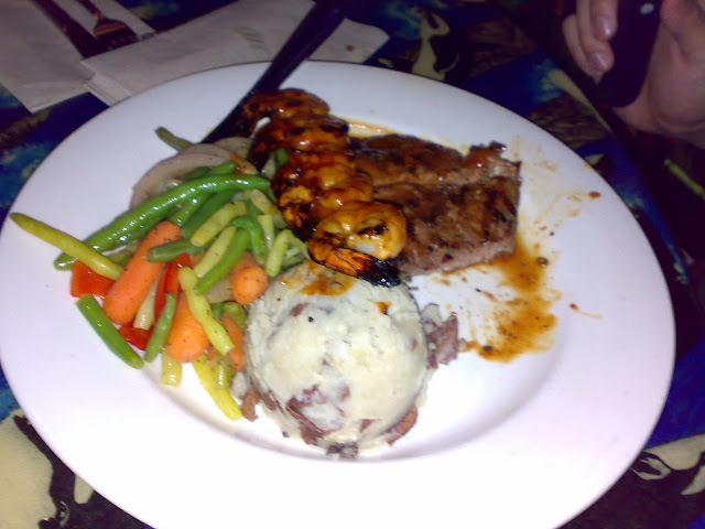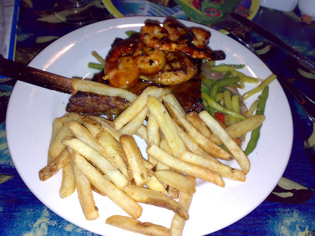 有豬肋排、雞排、蝦串燒、和一堆french fries,我吃到撐死~~~~~~~